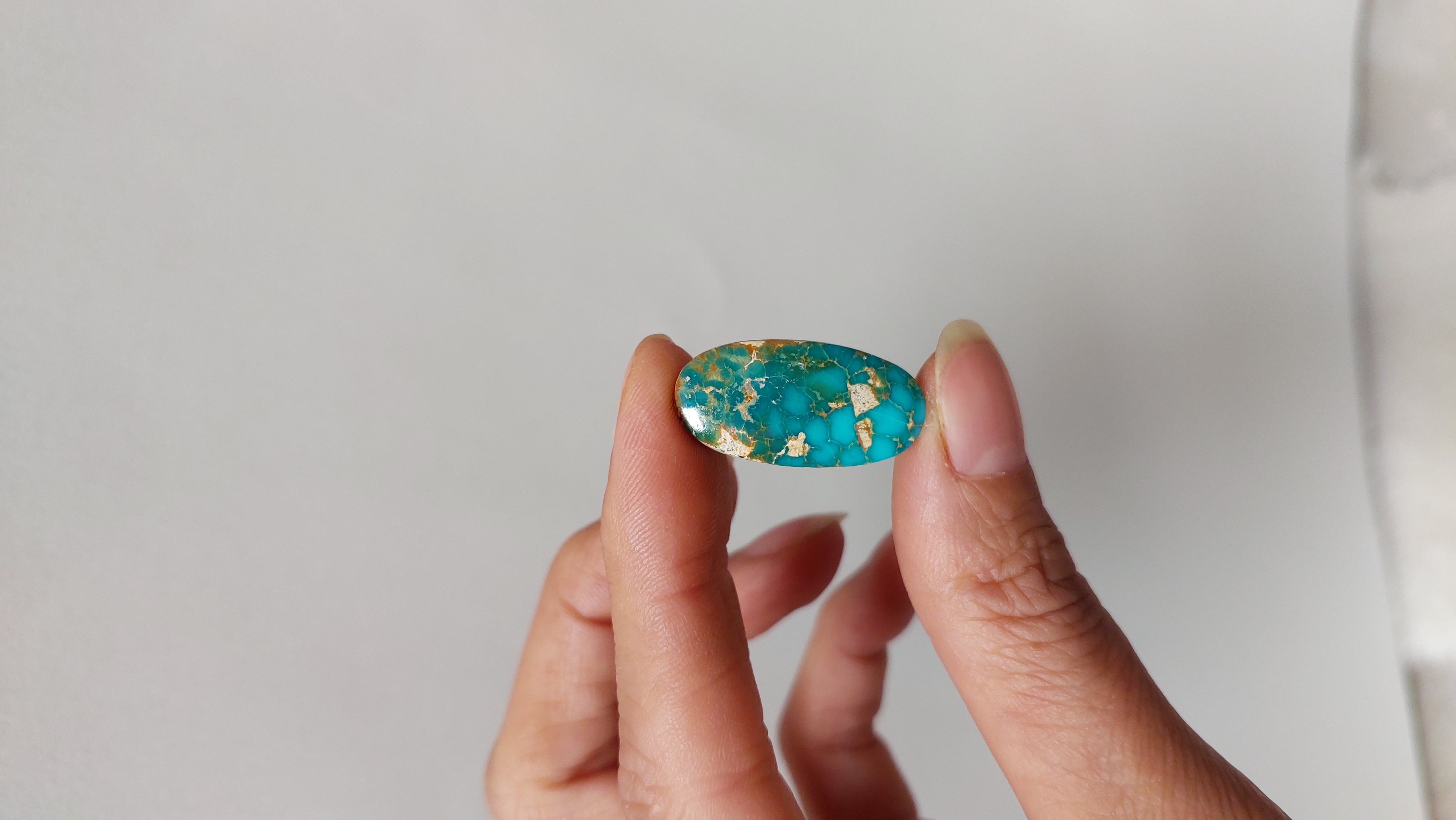فیروزه نیشابور اصل با تراش اشکی – سنگ قیمتی با رنگ آبی طبیعی، منحصر به فرد و انرژی‌بخش