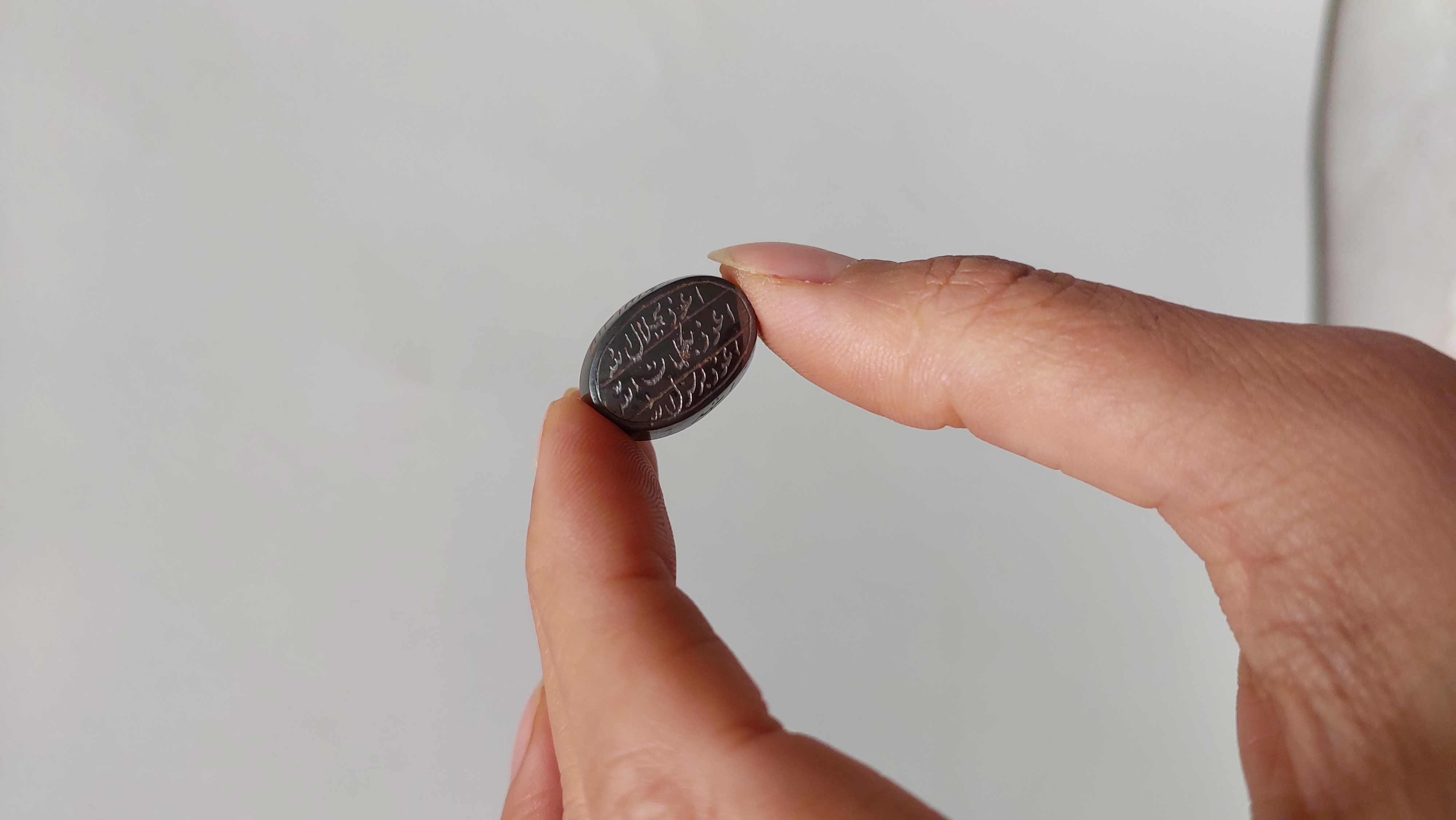 عقیق زرد اصل با حکاکی یاعلی و دعای شرف شمس